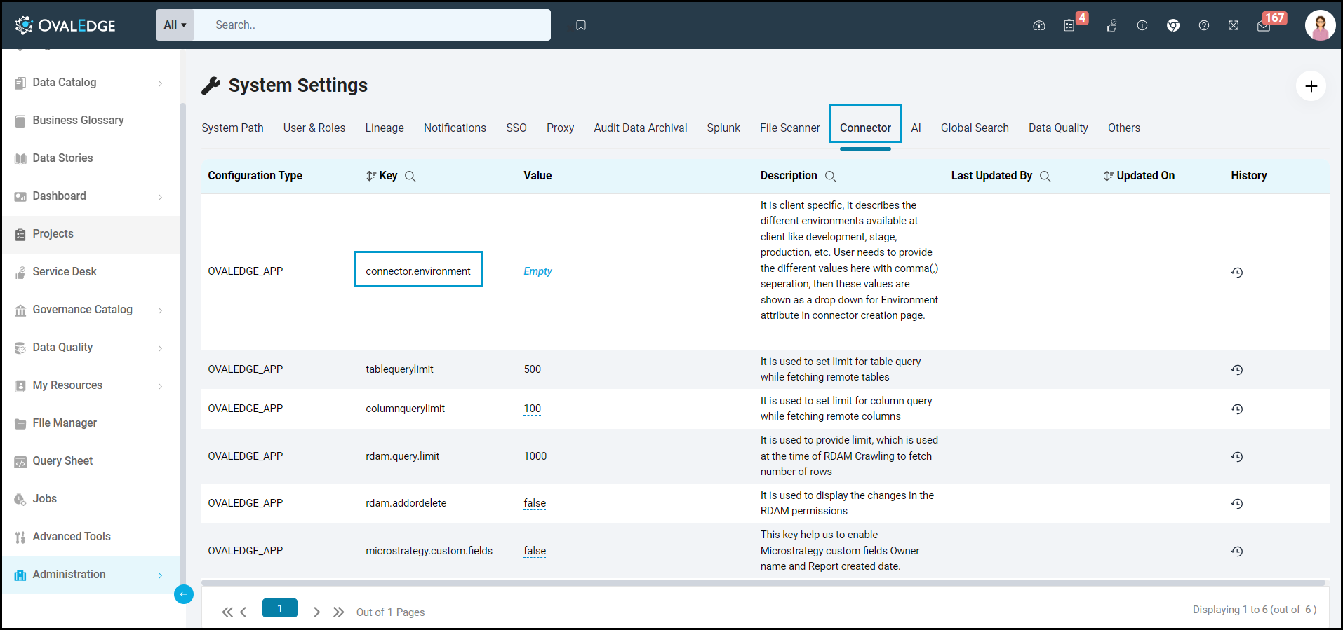 - Find the key name “connector.environment”.