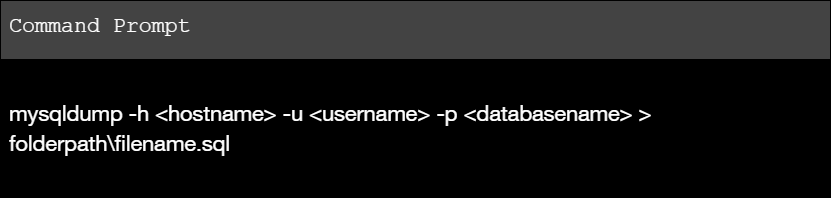 Example: mysqldump -u root -p ovaledgedb > D:\ovaledgebkp_210222.sql